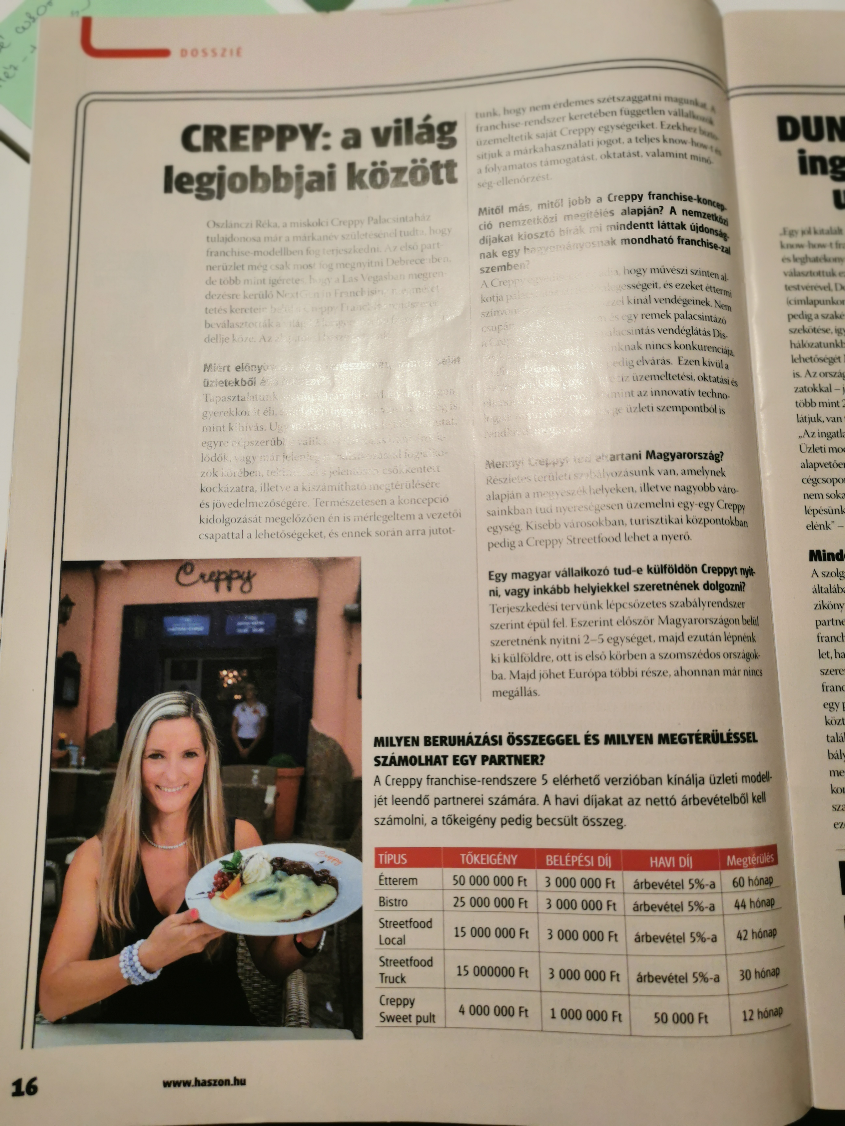Tapasztalatunk szerint franchise Magyarországon gyerekkorát éli, amelyben ugyanúgy van lehetőség is, mint kihívás. Ugyanakkor látványos fejlődést mutat, egyre népszerűbbé válik a vállalkozás iránti érdeklődők, vagy már jelenleg is vállalkozással foglalkozók körében, tekintettel a jelentős csökkentett kockázatra, illetve a kiszémítható megtérülésre és jövedelmezőségre. Természetesen a koncepció kidolgozását megelőzően én is mérlegeltem a vezetői csapattal a lehetőségeket, és ennek során arra jutottunk, hogy a nem érdemes szétszaggatni magunkat. A franchise-rendszer keretében független vállalkozók üzemeltetik saját Creppy egységeiket. Ezekhez biztosítjuk a márkahasznélati jogot, a teljes know-how-t és folyamatosan támogatást, oktatást, valamint minőség-ellenőrzést.